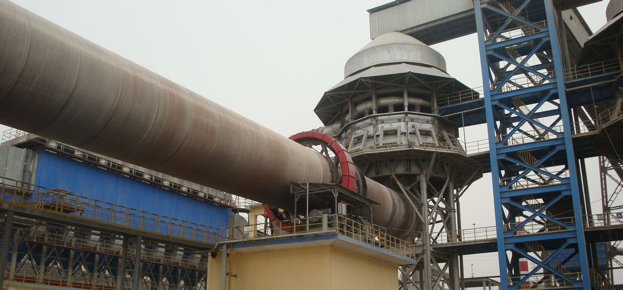 物料從窯尾(筒體的高端)進入窯內(nèi)煅燒。由于筒體的傾斜和緩慢的回轉(zhuǎn)作用,物料即沿圓周方向翻滾又向軸向(從高端向低端)移動,在窯內(nèi)完成分解和燒成的工藝過程,經(jīng)過物理和化學(xué)變化,最后,經(jīng)窯頭罩排出。燃料由窯頭噴入窯內(nèi),燃燒生成的廢氣與物料進行熱交換后,由窯尾導(dǎo)出。